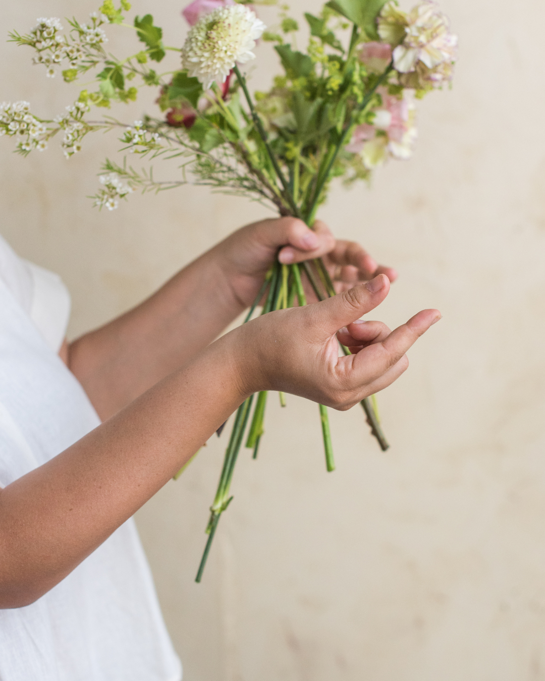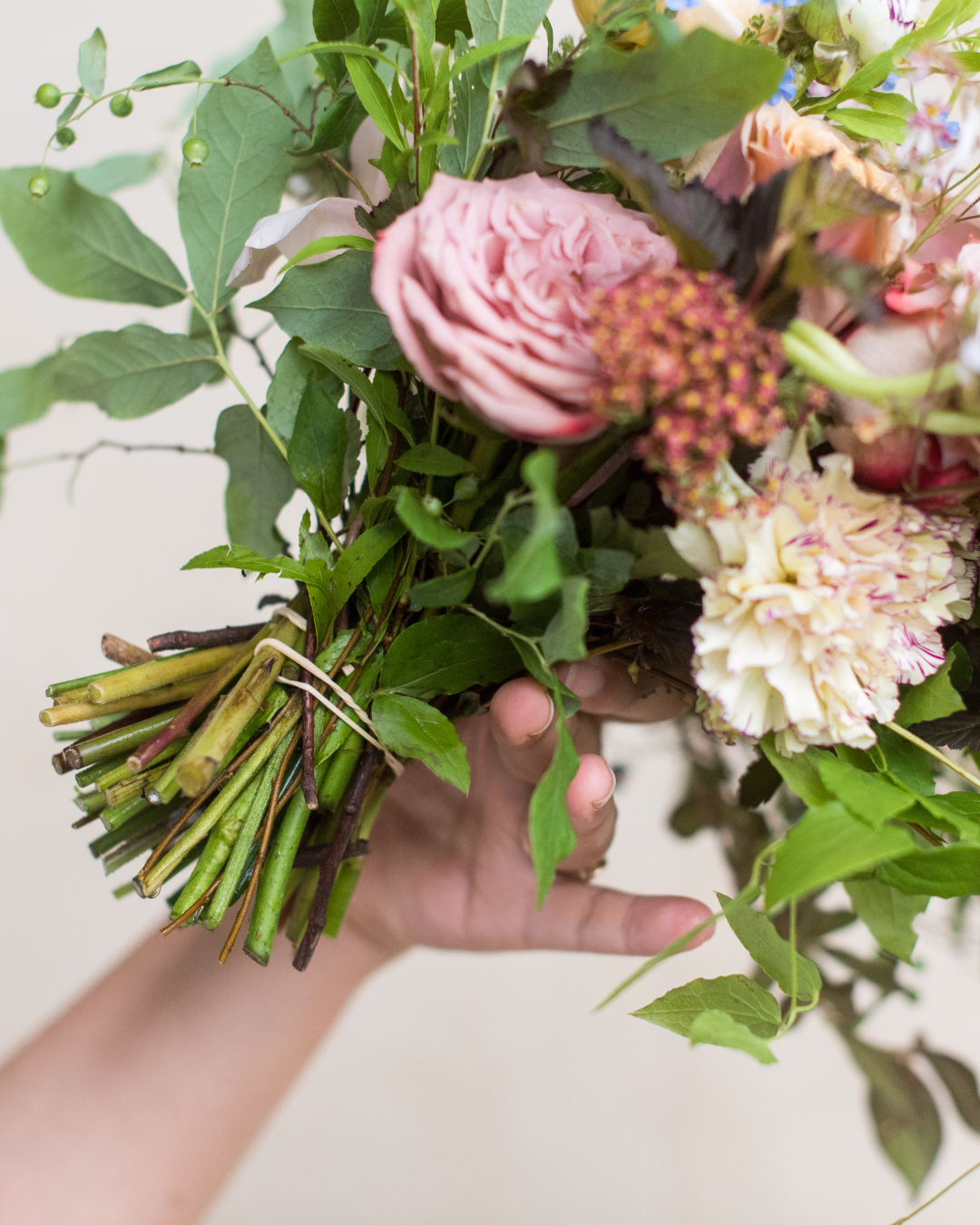 → A small retail-ready hand-tied ($28–35 price point)